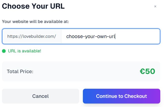 Pick a custom web address for your love website, pay and the website will be hosted within minutes.