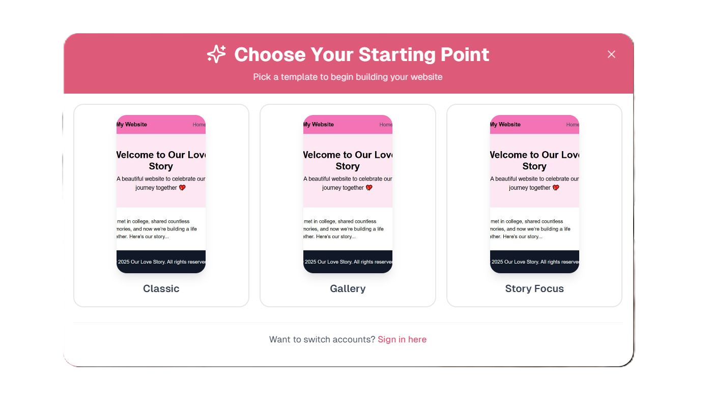 LoveBuilder made it so easy to create a website for our anniversary. Our friends loved it!