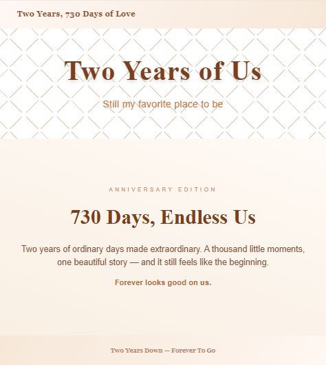 For long-distance couples, a website can become a shared space for milestones, countdowns, favorite memories, and future plans when you are not in the same place. It helps turn distance into something you are navigating together rather than something that constantly feels fragmented.
